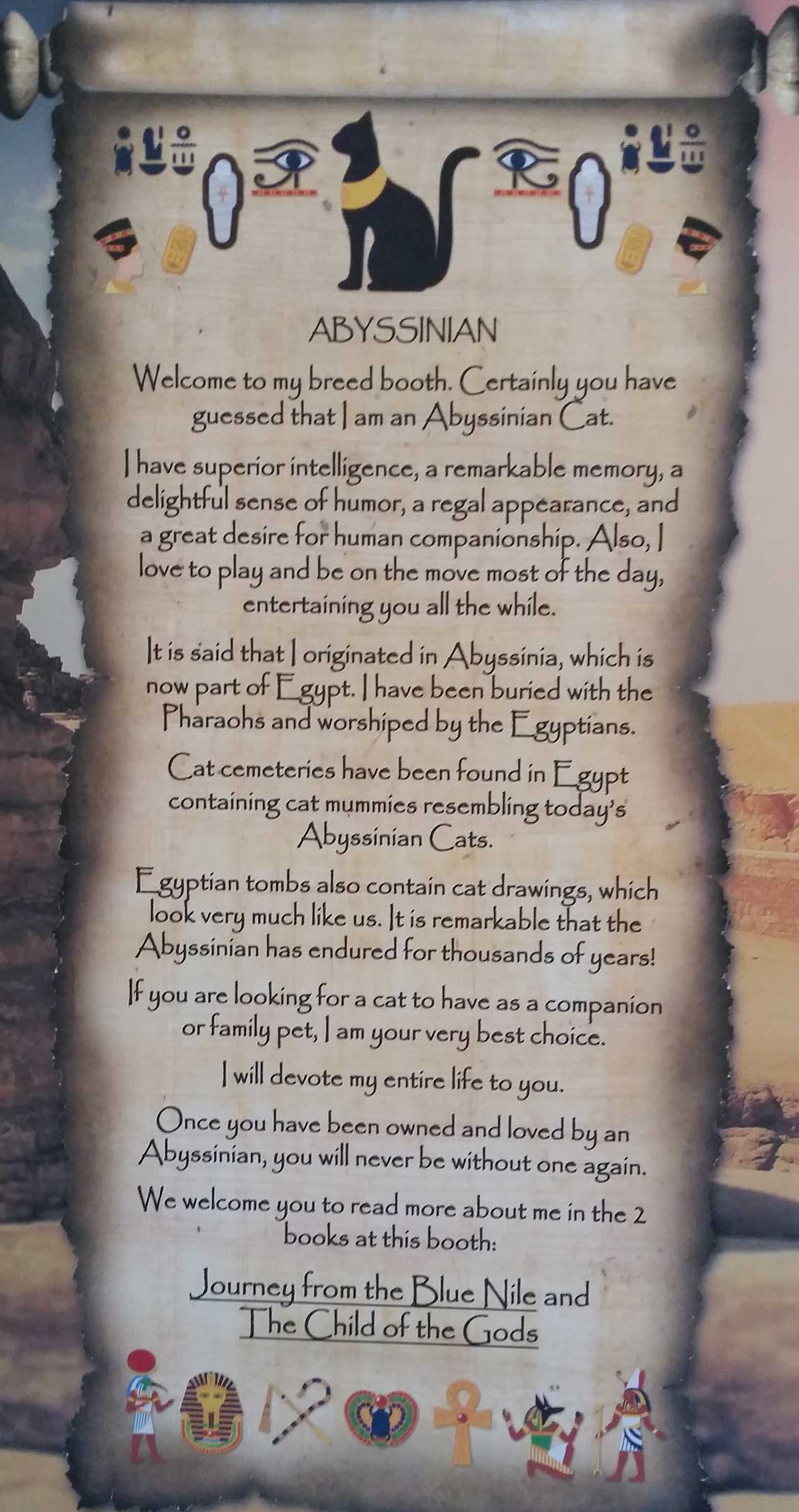 We've been busy redesigning the Abyssinian Breed Booth, which will be unveiled at the CFA International Show in Portland, OR in November, 2017. Here's an advance peak at the new design (right) - click on the image for a larger version.