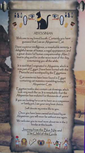 Our site offers a wide variety of links to our Breed Council Newsletters, sites with historical Abyssinian information, pages regarding health issues of interest to Abyssinian breeders and owners, plus many, many photos of beautiful Abyssinians. And, for that "something a little extra", we've included Abyssinian Lagnappe.